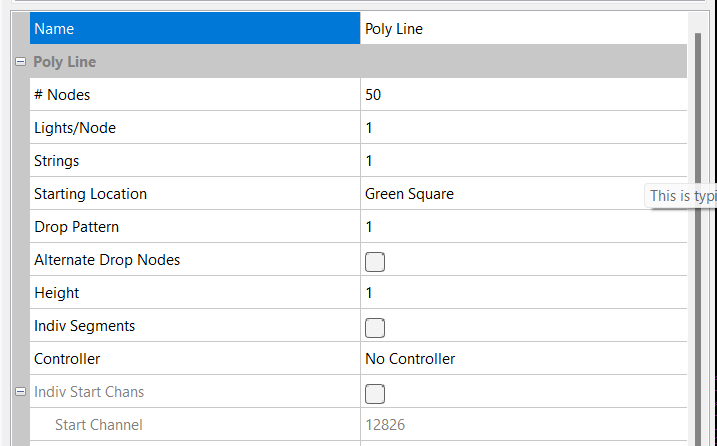 The # of Nodes defines the total number of nodes for the entire model, the Lights/Node is normally one and the Starting location can be the Green Square(Left) or Blue Square(Right).
